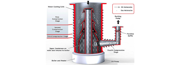 The oil can be contaminated with moisture, in which case the absorbed water vapor will flash off during pumping, consuming a significant portion of the pump’s capacity. In diffusion pumps, the use of hydrocarbon based oils can leave a burnt residue on the pump interior and potentially clog the vapor jets. Silicone based oils are less prone to this oxidation and are required for diffusion pumps. With dry pumps, oil does not mix with the pumped gas and therefore burning and oxidation are not a concern, but oil is used to lubricate the bearings and gears so it must be changed periodically.