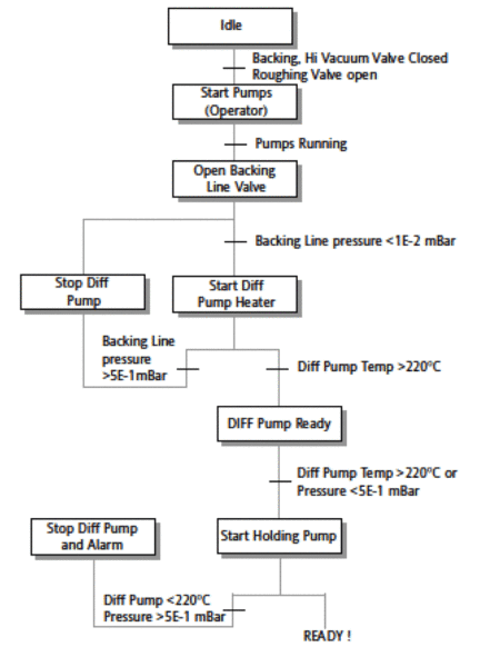 Vacuum pumps should be started (and stopped) in a particular sequence. Having a defined pump startup sequence (Fig. 4) and chamber evacuation procedure (Fig. 5) is highly recommended (and will be explored in detail in future articles in this series).